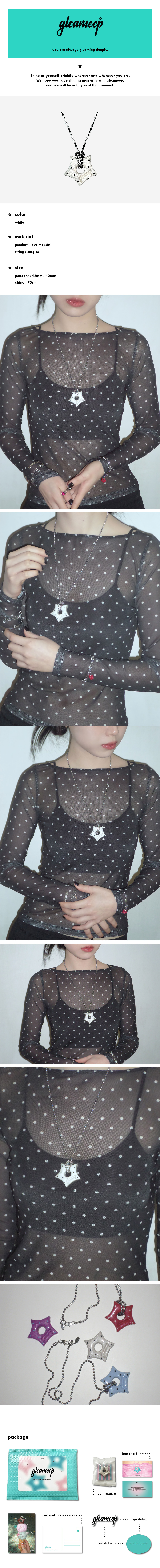 gleaming star dot necklace는 커스텀 형식으로 줄을 선택할 수 있는 기존 펜던트와 달리 하나의 줄로 이루어진 목걸이입니다. 기존 줄과도 호환 가능이 가능하며 도트 무늬와 글리밉 시그니처 별 모양이 포인트인 제품입니다.