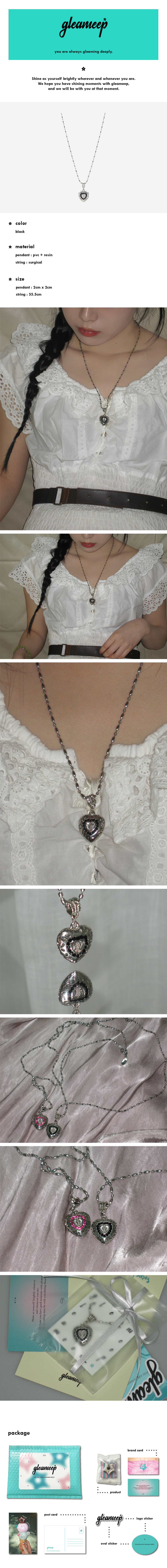 vintage heart lock necklace는 글리밉의 첫 번째 실버 라인 제품으로 볼드함을 담고 있는 하트 참과 체인이 빈티지스러운 제품입니다. 또한 후크 옆에 달려있는 글리밉 로고 펜던트가 포인트입니다.