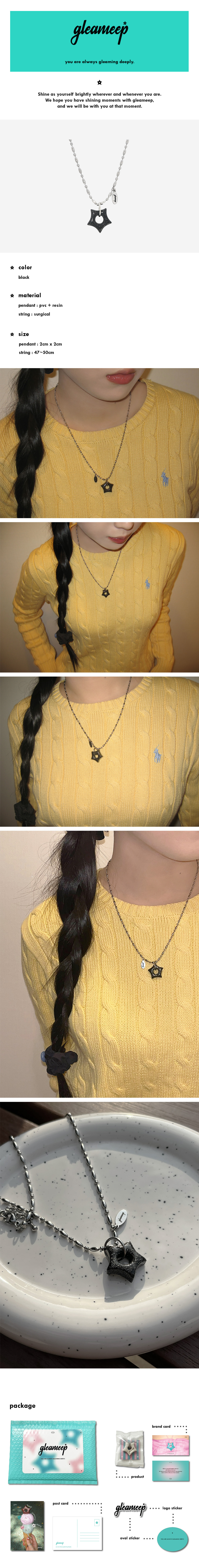 gleameep's necklace series gleaming little star necklace는 글리밉의 첫번째 목걸이 시리즈입니다. gleaming star pendant의 작은 버전 펜던트와 글리밉 로고가 각인된 써지컬펜던트가 포인트입니다.