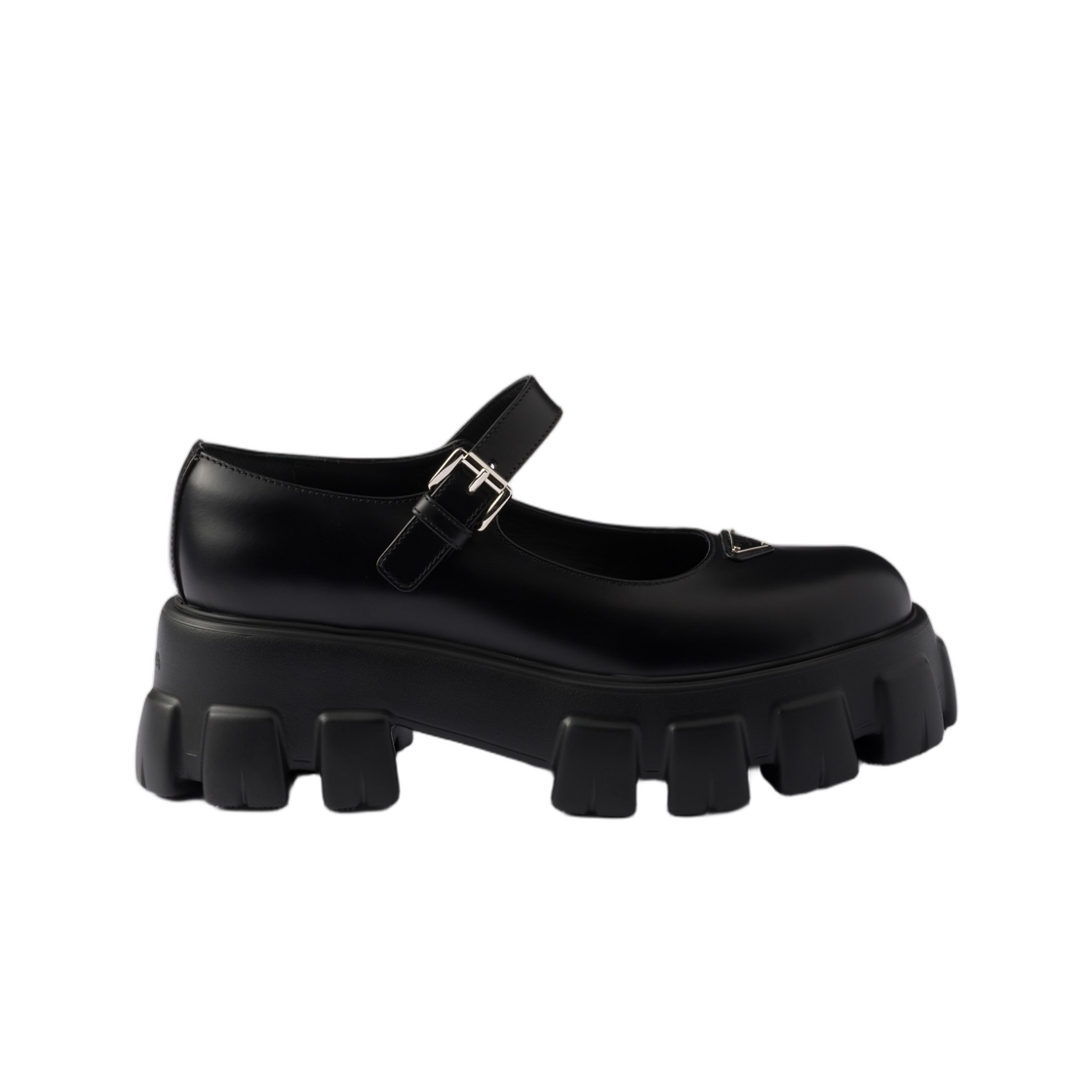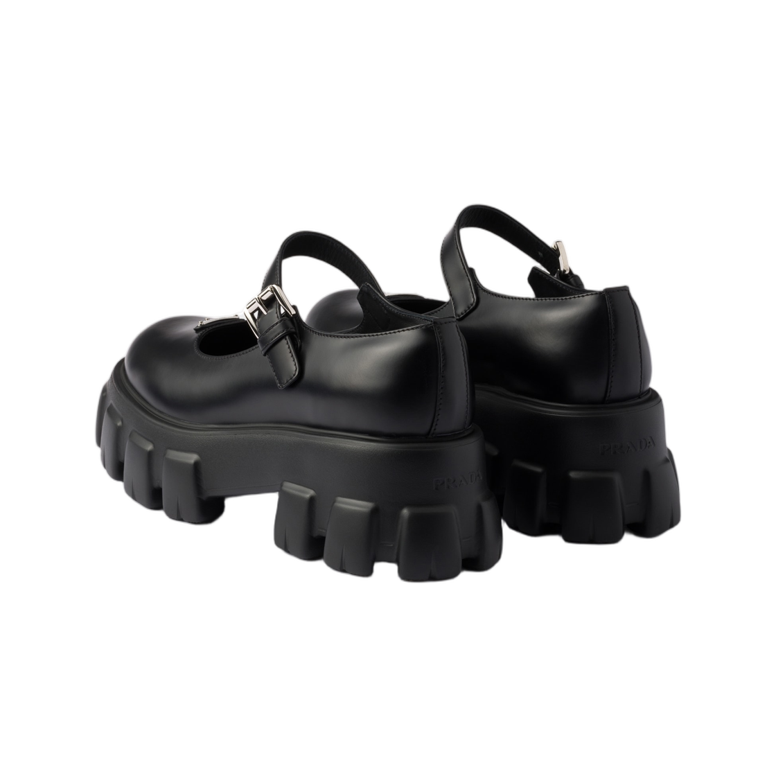 (W) 프라다 브러쉬드 레더 모놀리스 메리 제인 블랙