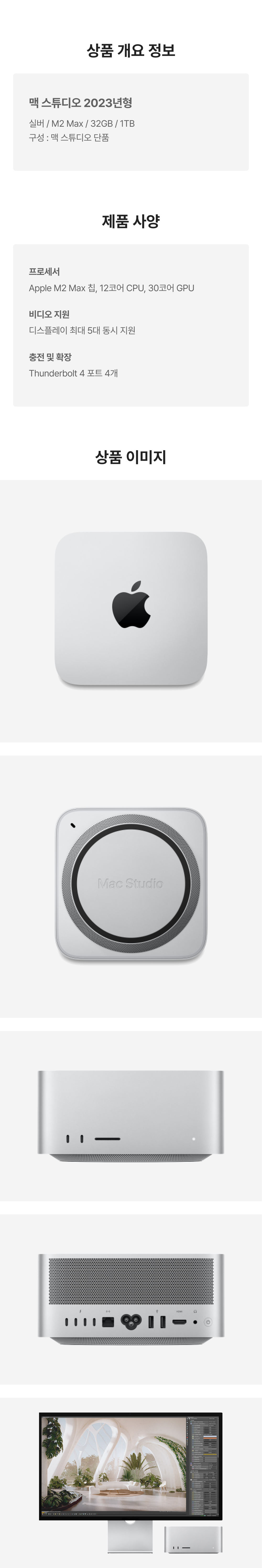 [A등급] 리퍼비시 2023 맥 스튜디오 M2 Max 1테라 SSD 32기가 램 실버