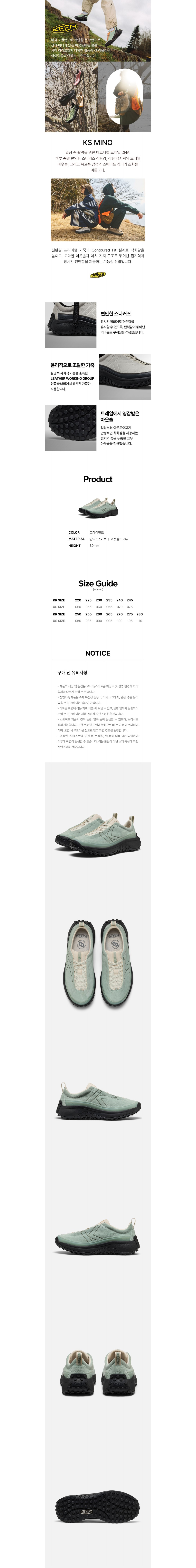 킨 KS MINO 여성 스니커즈 아이스버그 그린 블랙