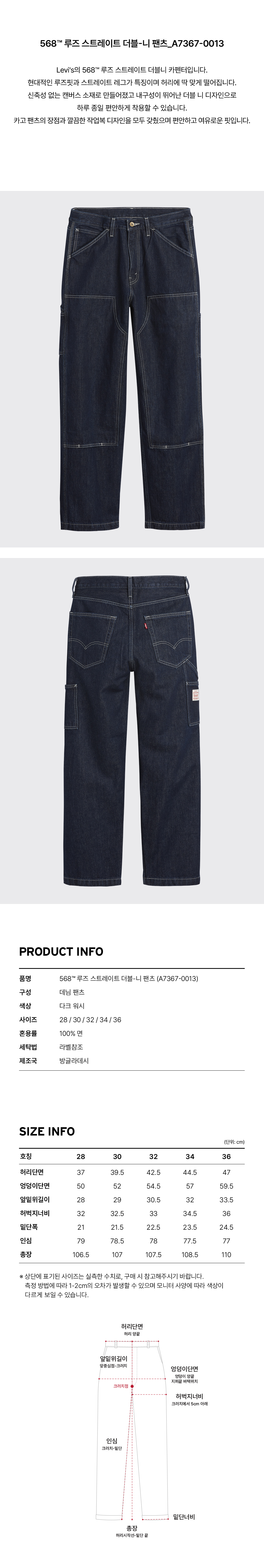 리바이스 568 루즈 스트레이트 더블 니 팬츠 다크 워시