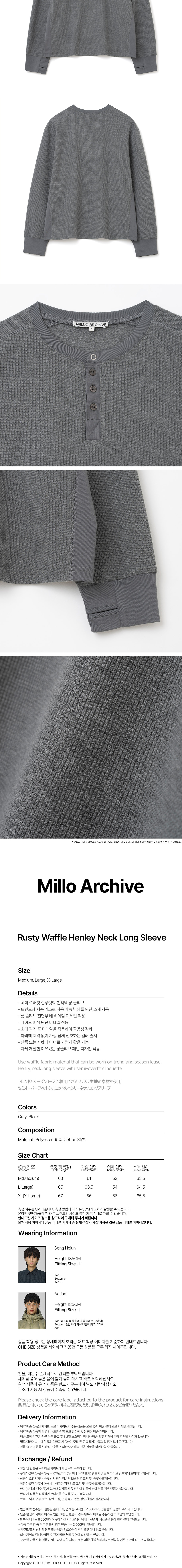 밀로 아카이브 러스티 와플 헨리넥 롱 슬리브 그레이