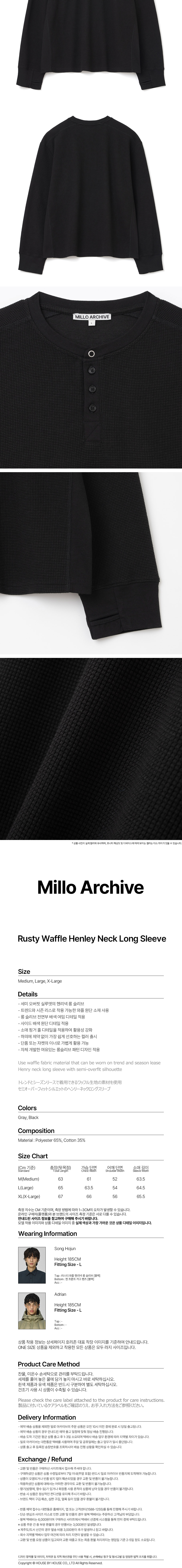 밀로 아카이브 러스티 와플 헨리넥 롱 슬리브 블랙