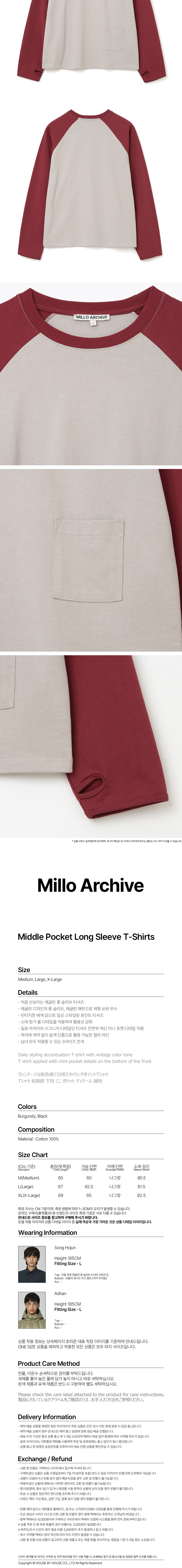 밀로 아카이브 미들 포켓 래글런 롱 슬리브 버건디