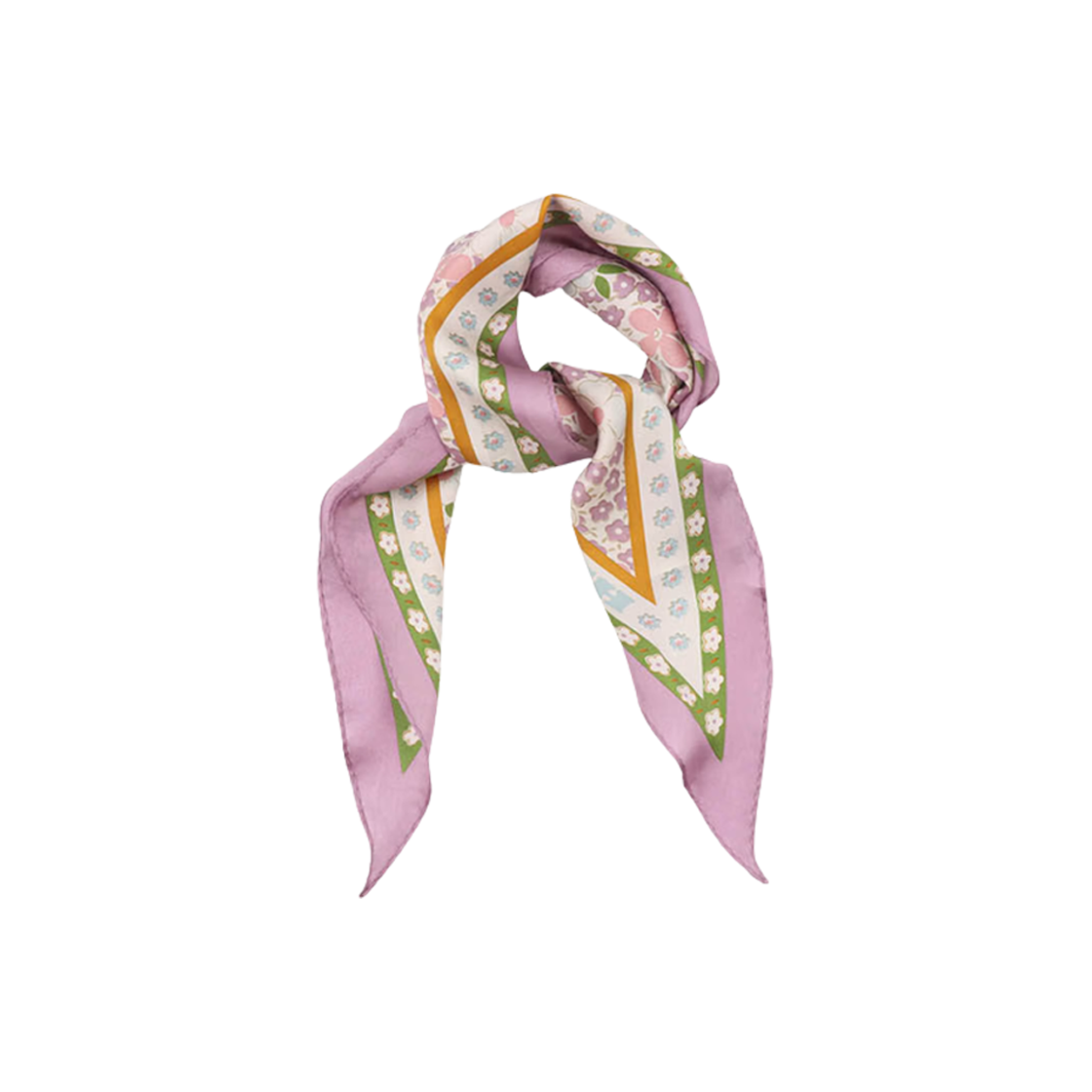 (W) 코치 빈티지 플라워 프린트 실크 다이아몬드 스카프 라일락 멀티