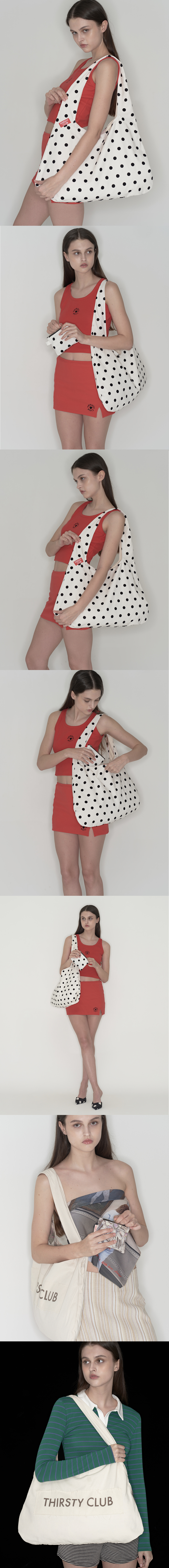 THIRSTY CLUB Big Hobo Bag - White Polka Dot (Reversible) & Pouch