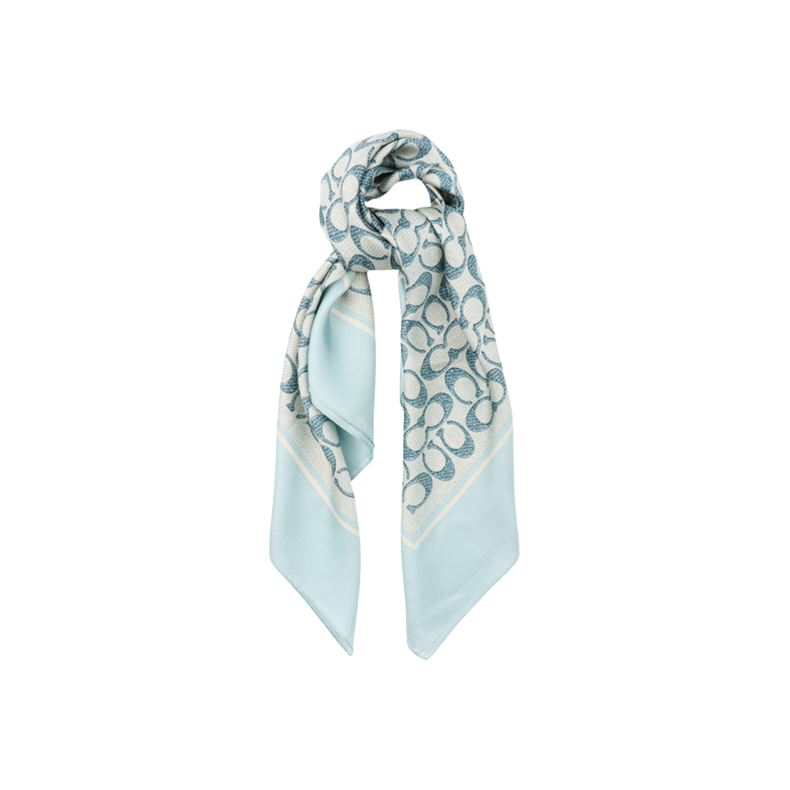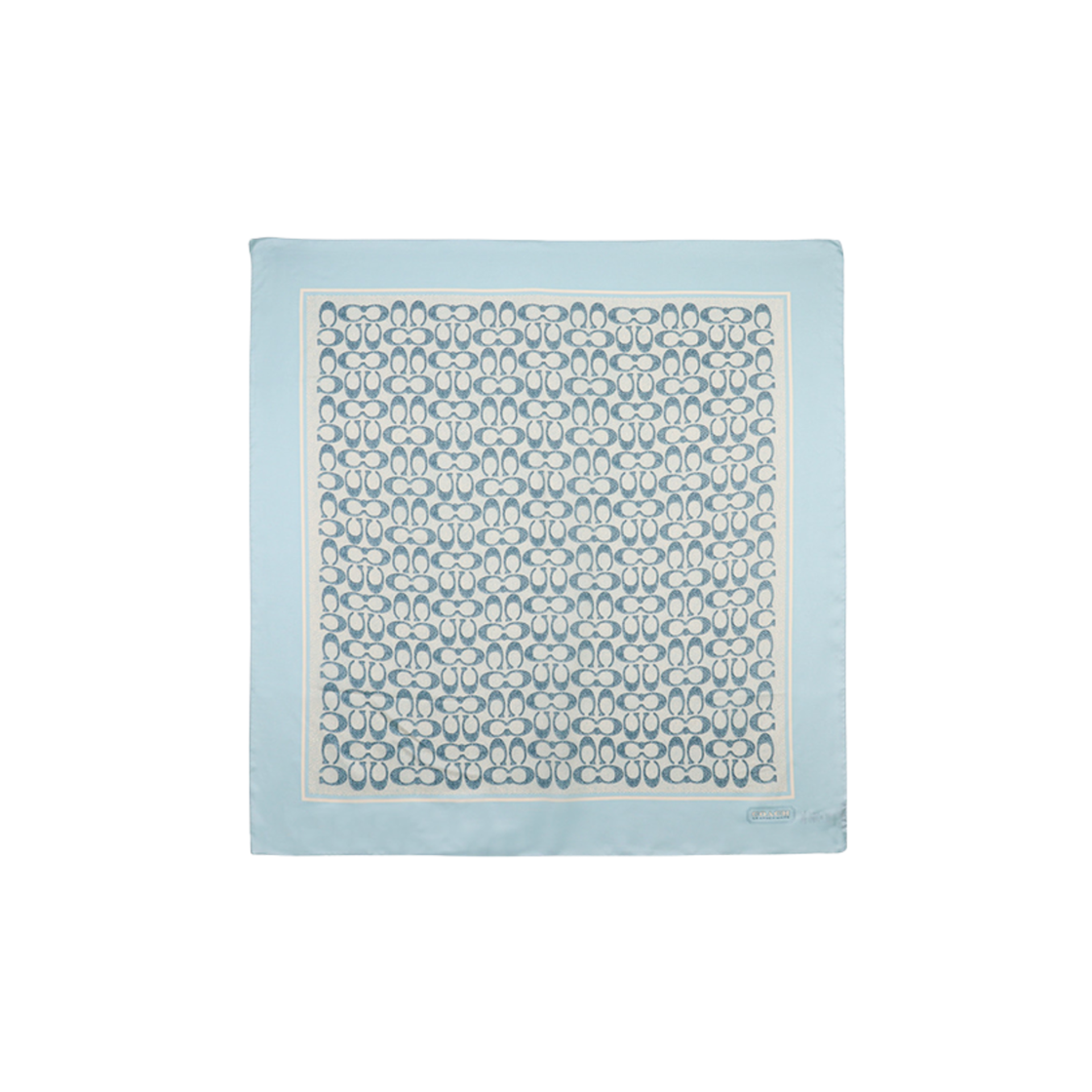 (W) 코치 빈티지 시그니처 프린트 실크 스퀘어 스카프 라이트 블루