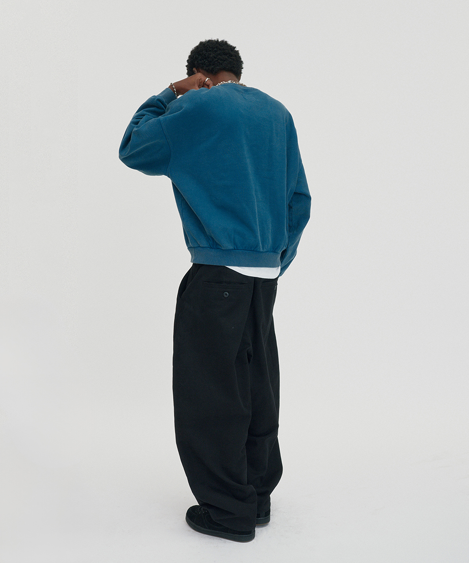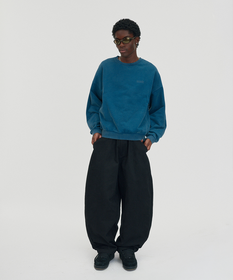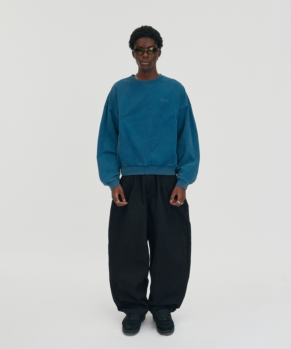 스웨이드 크롭 워시드 크루넥 딥그린