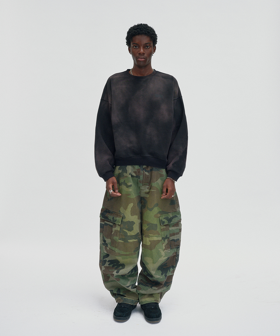 스웨이드 크롭 워시드 크루넥 다크 블랙