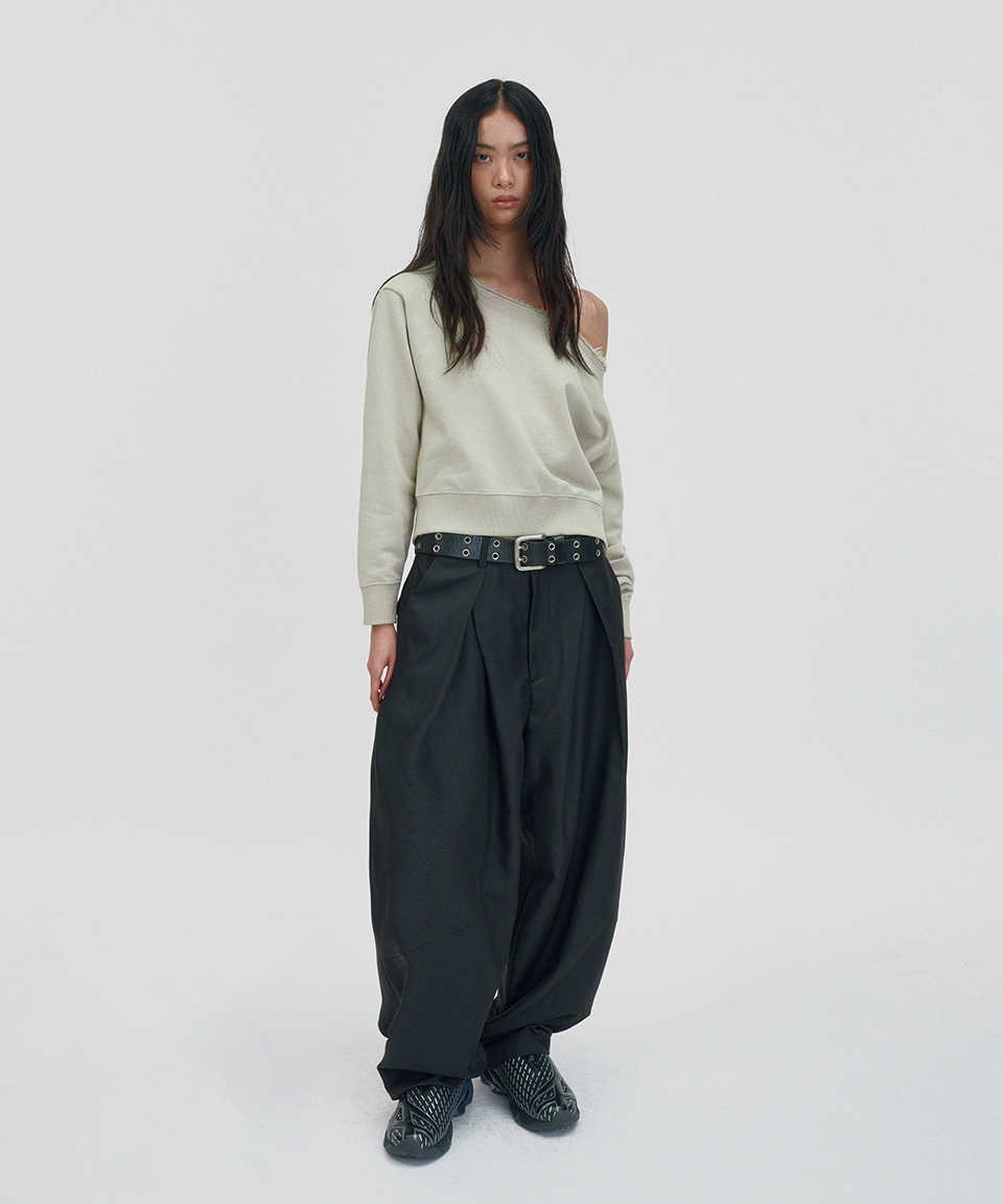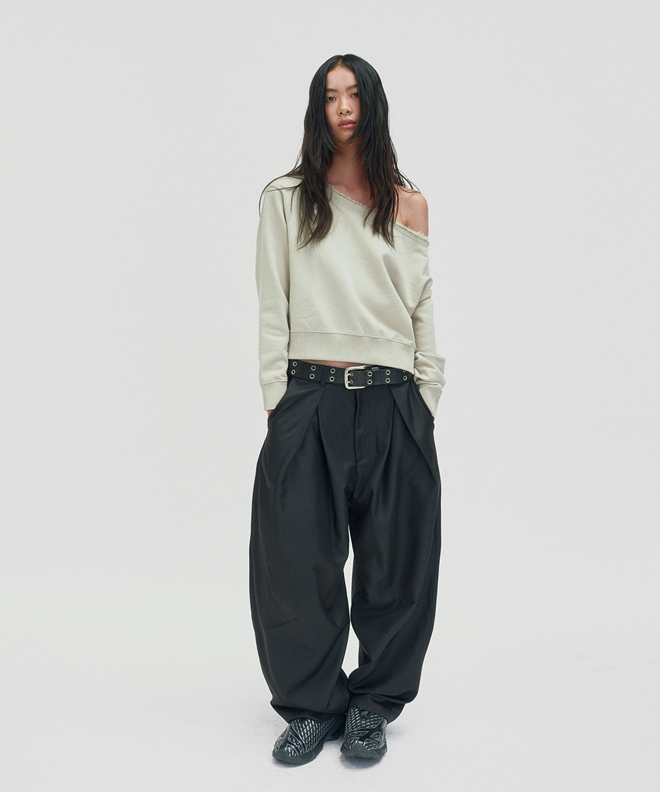 스웨이드 써니 원 숄더 크루넥 크림