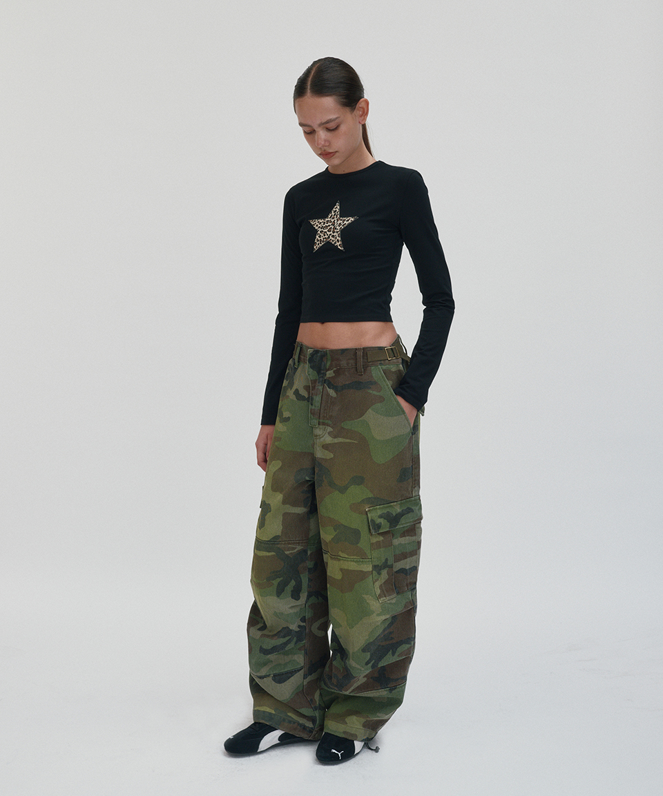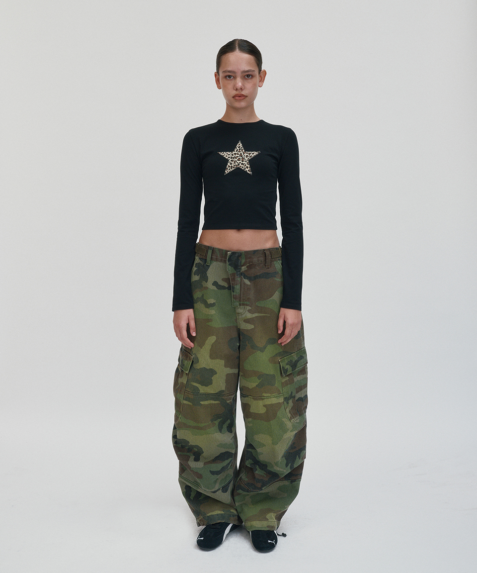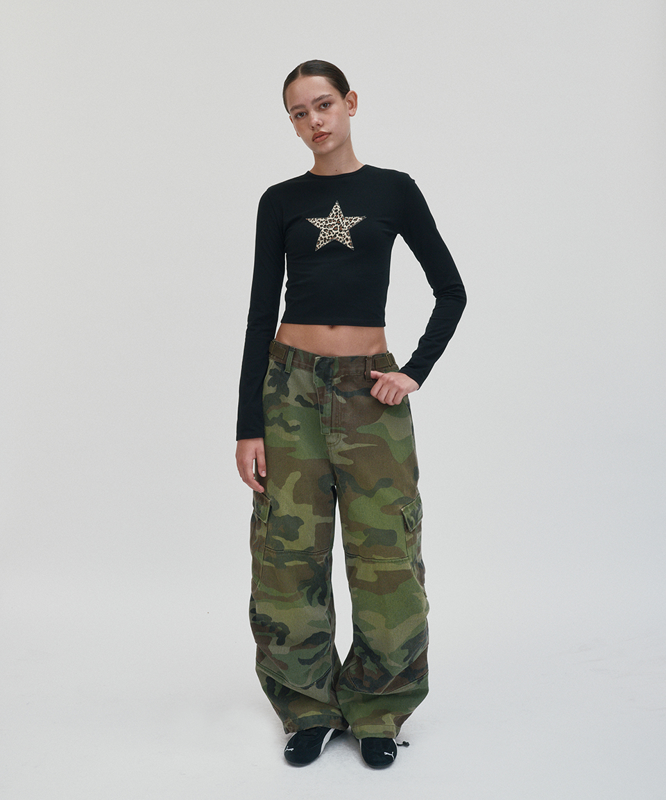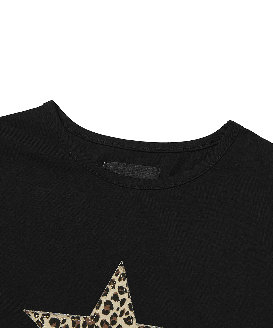 스웨이드 레오파드 스타 롱슬리브 블랙