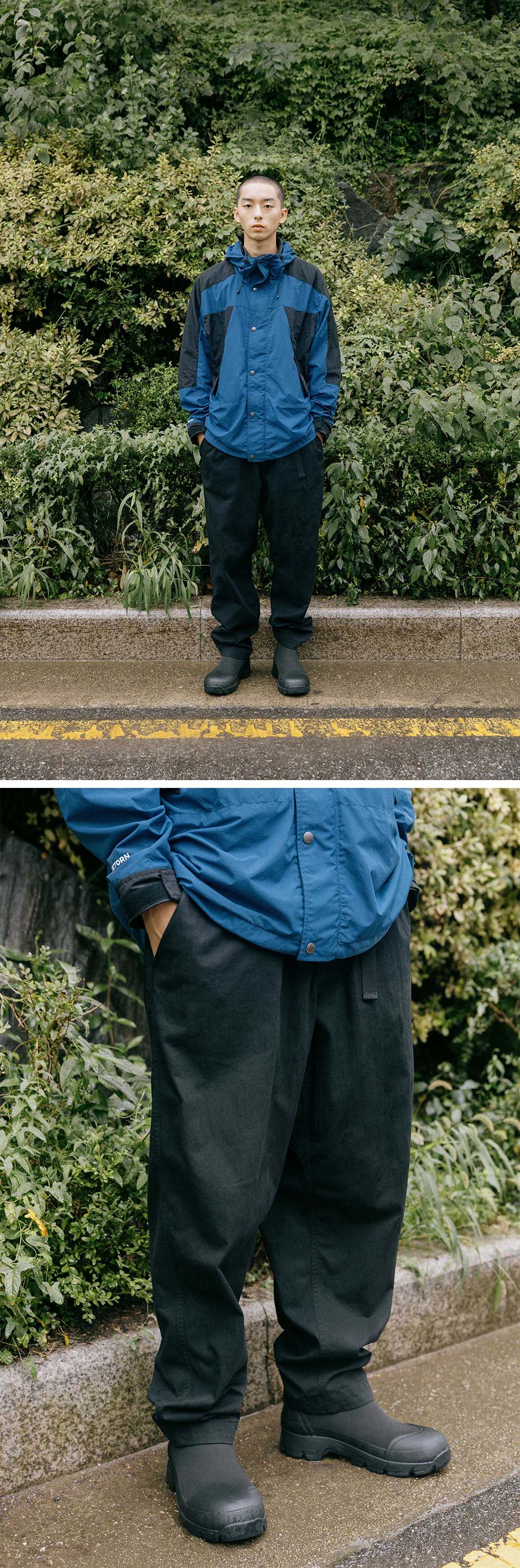 트레통 와이드 테이퍼드 팬츠 블루 블랙