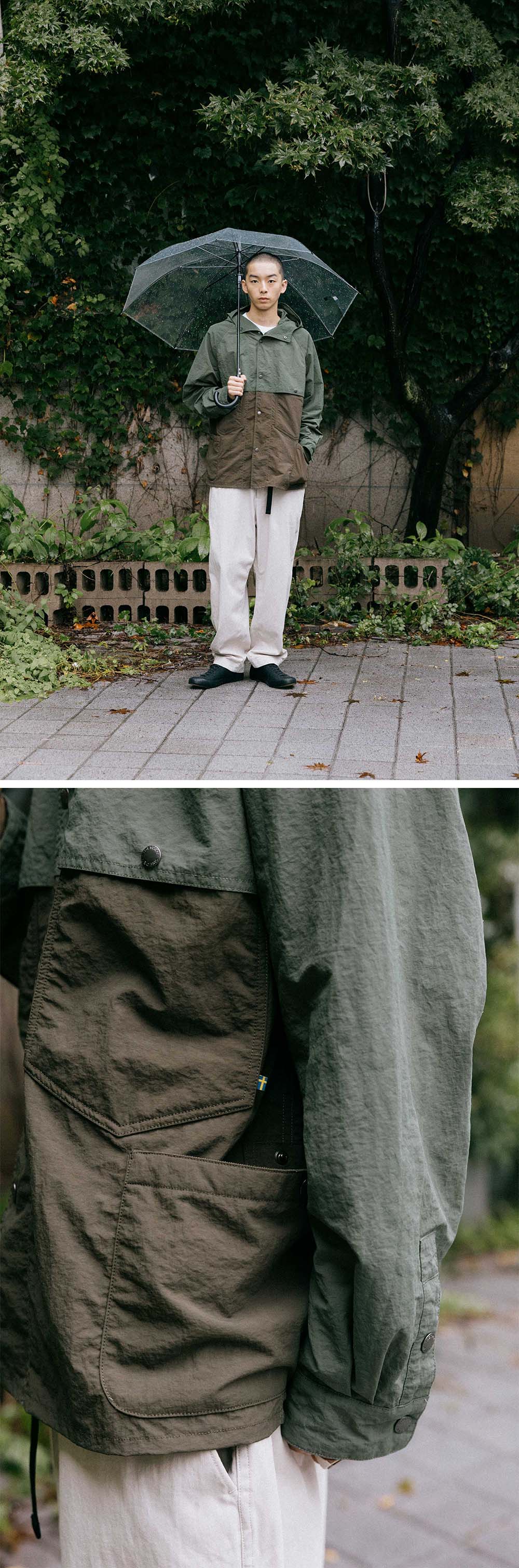 트레통 나일론 후드 자켓 세이지 그린