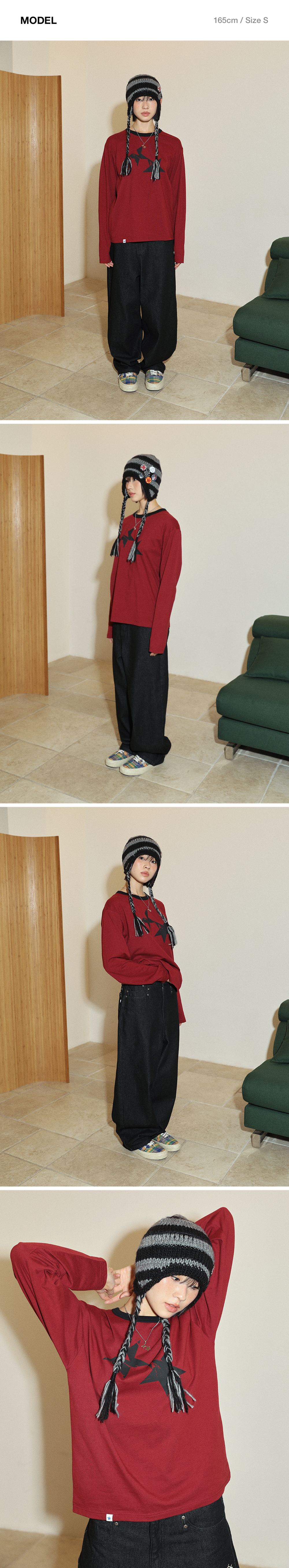 카비시 트윈 스타 롱슬리브 티셔츠 버건디