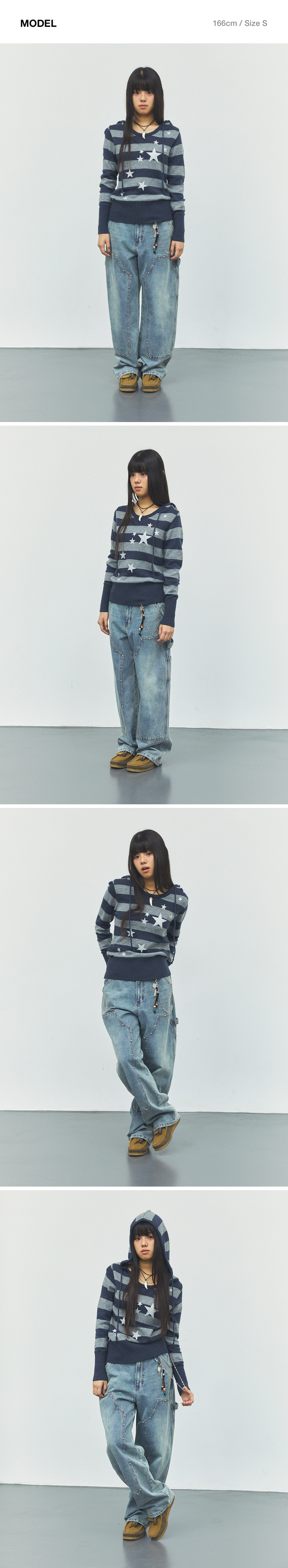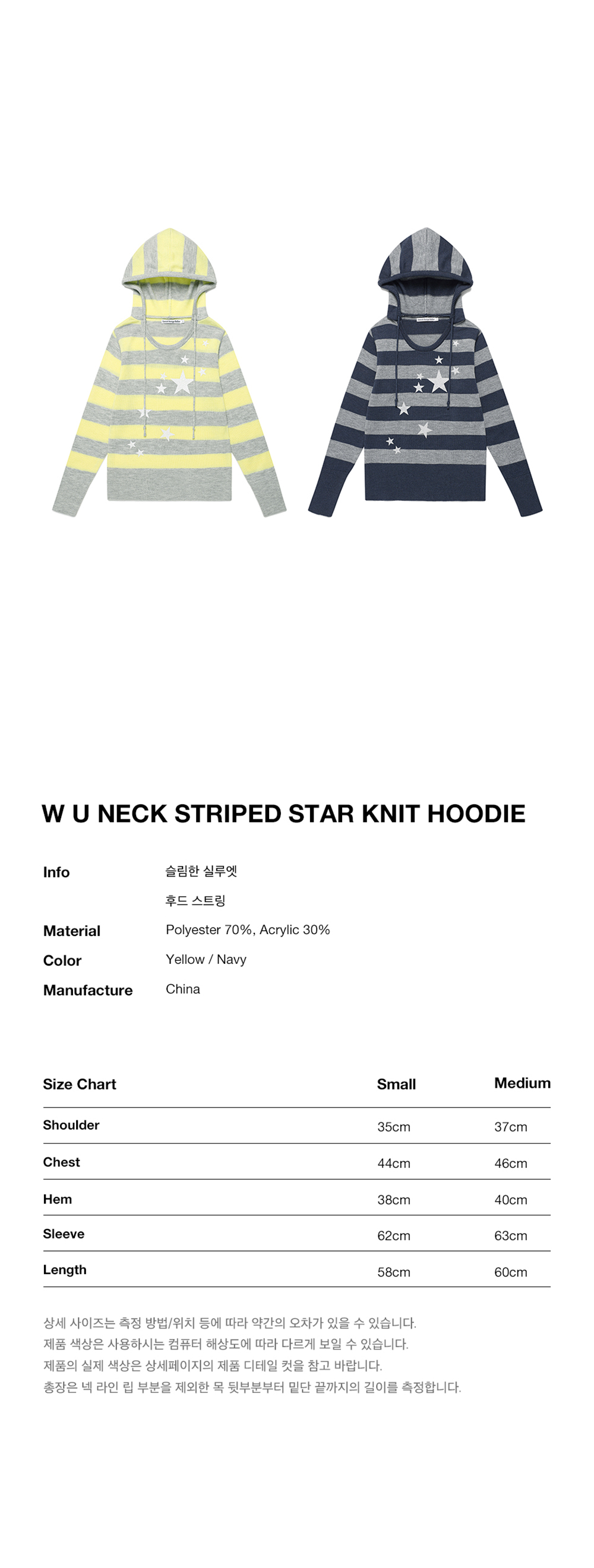 CAVISH W U Neck Striped Star Knit Hoodie Yellow