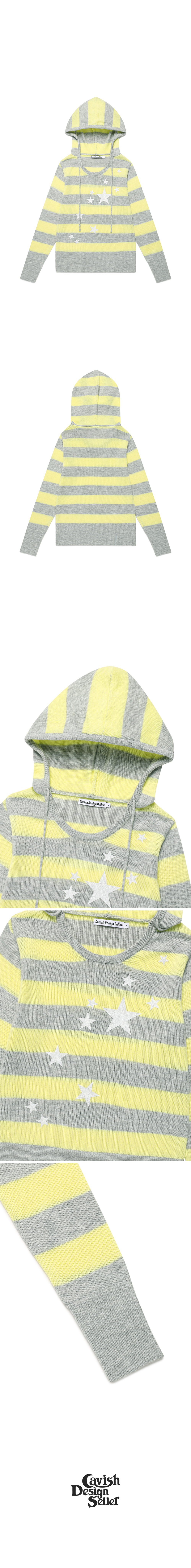 카비시 W U넥 스트라이프 스타 니트 후디 옐로우