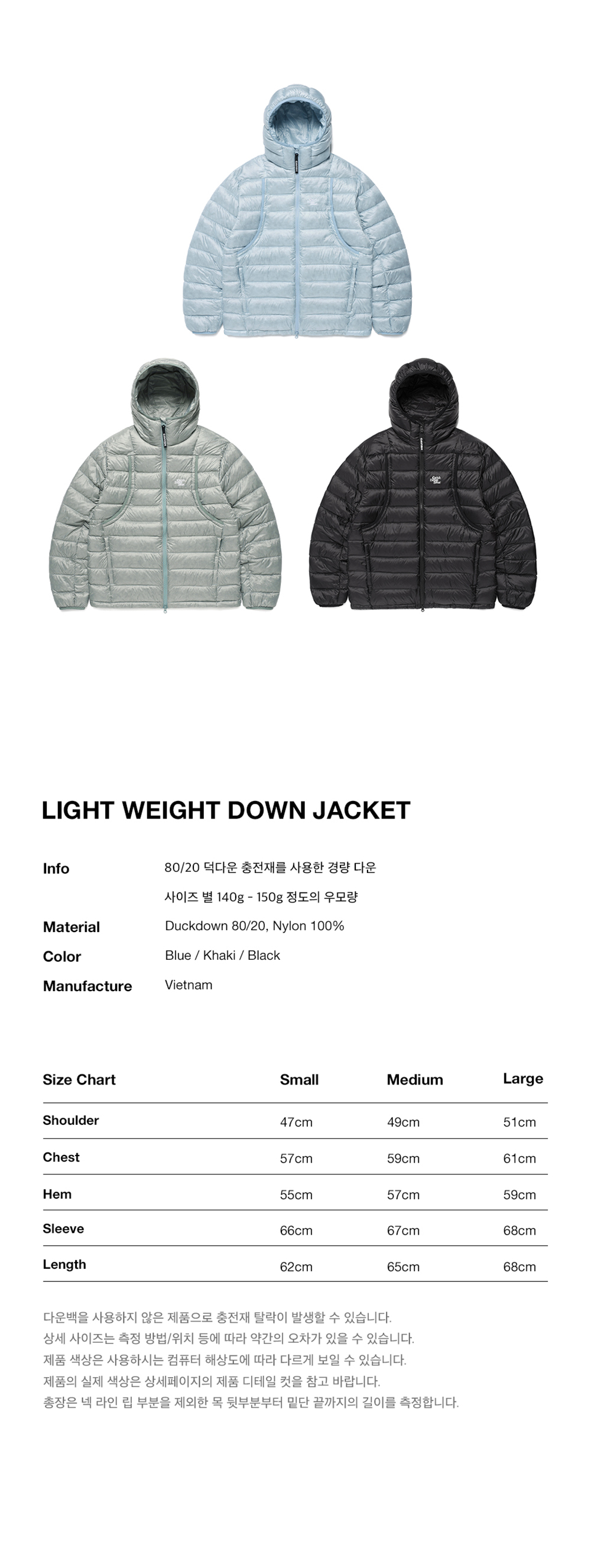 카비시 라이트 웨이트 다운 자켓 카키