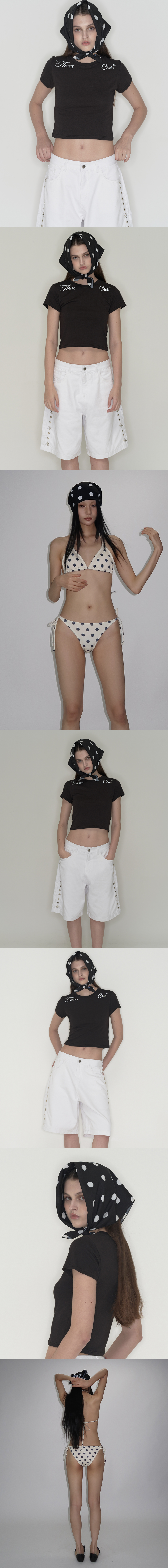 트렌디한 블랙 폴카도트로 포인트를 주기 좋은 아이템 블루컬러의 레터링이 포인트 가슴에 둘러서 탑으로 입어도 될 정도의 와이드한 사이즈 높은 활용도로 다양하게 사용가능 1.머리에 두르는 스카프 2.가슴에 두르는 탑 3.허리에 두르는 레이어드 스타일 등 비치웨어나 캐주얼웨어 등 어디에나 잘 어울리는 스카프