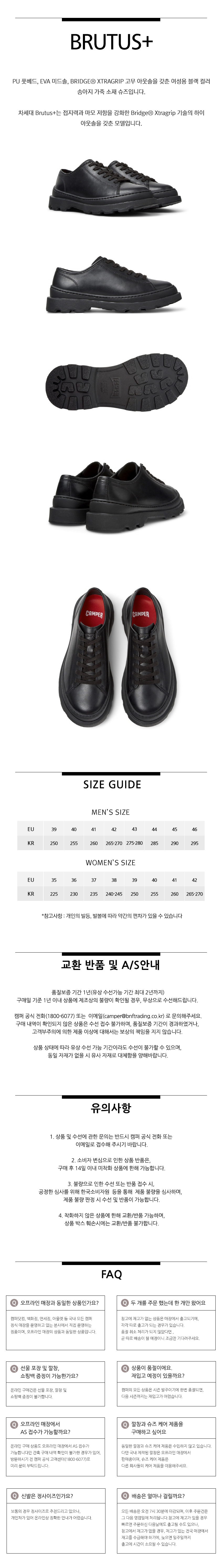캠퍼 여성 브루투스+ 정장화 블랙