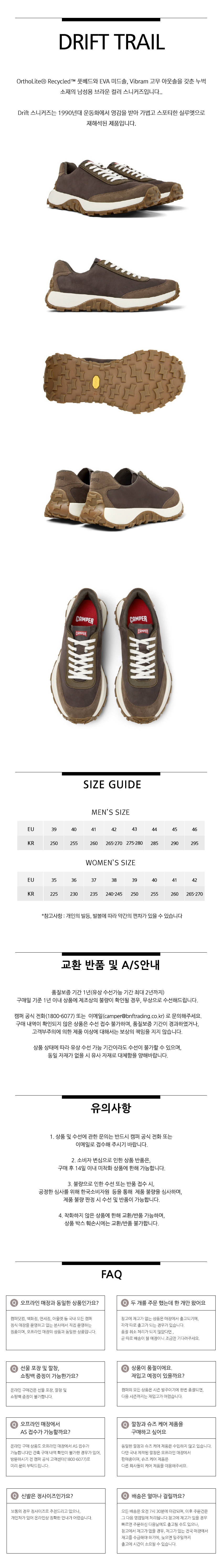 캠퍼 남성 드리프트 트레일 스니커즈 브라운