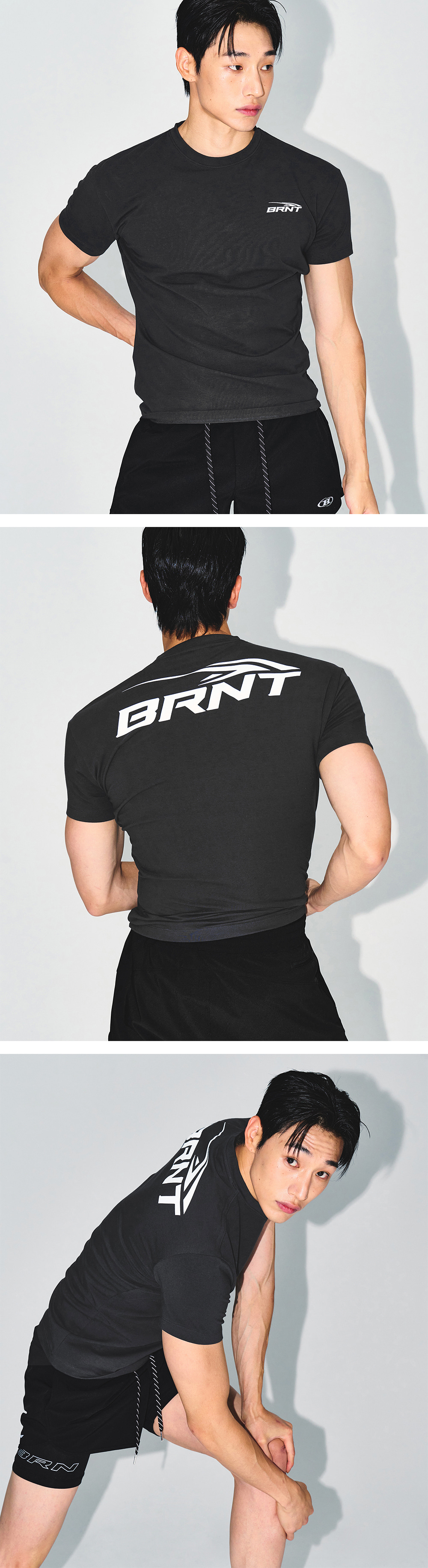 본투윈 BRNT 백 로고 머슬 핏 티셔츠 차콜