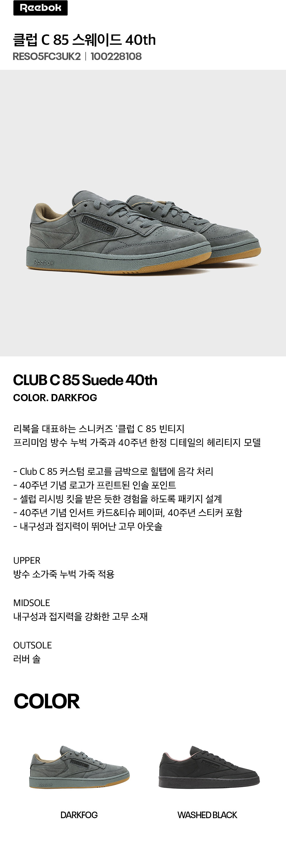 리복 클럽 C 85 스웨이드 40th 다크포그
