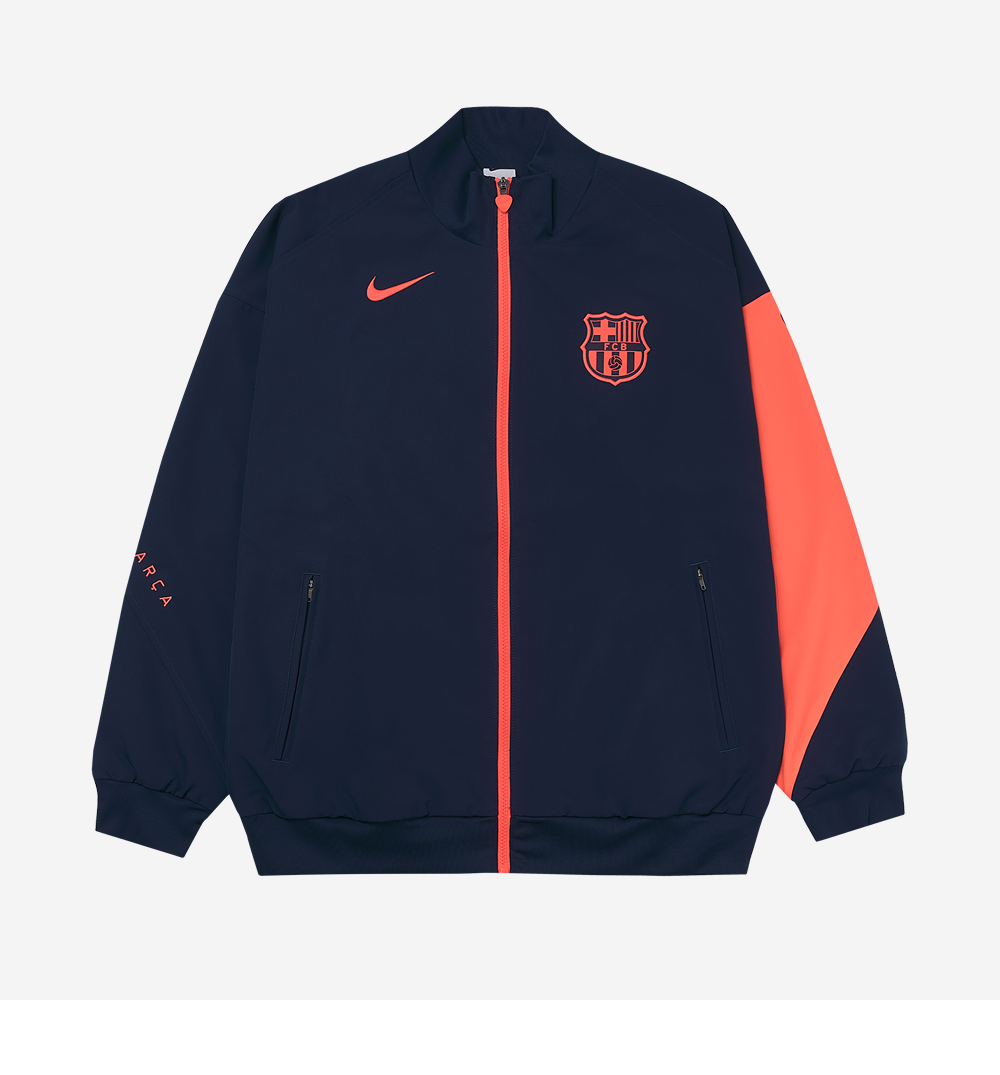 나이키 FC 바르셀로나 스트라이크 3rd 드라이핏 토탈 90 사커 앤섬 자켓 미드나잇 네이비 브라이트 망고 (논 마킹 버전)