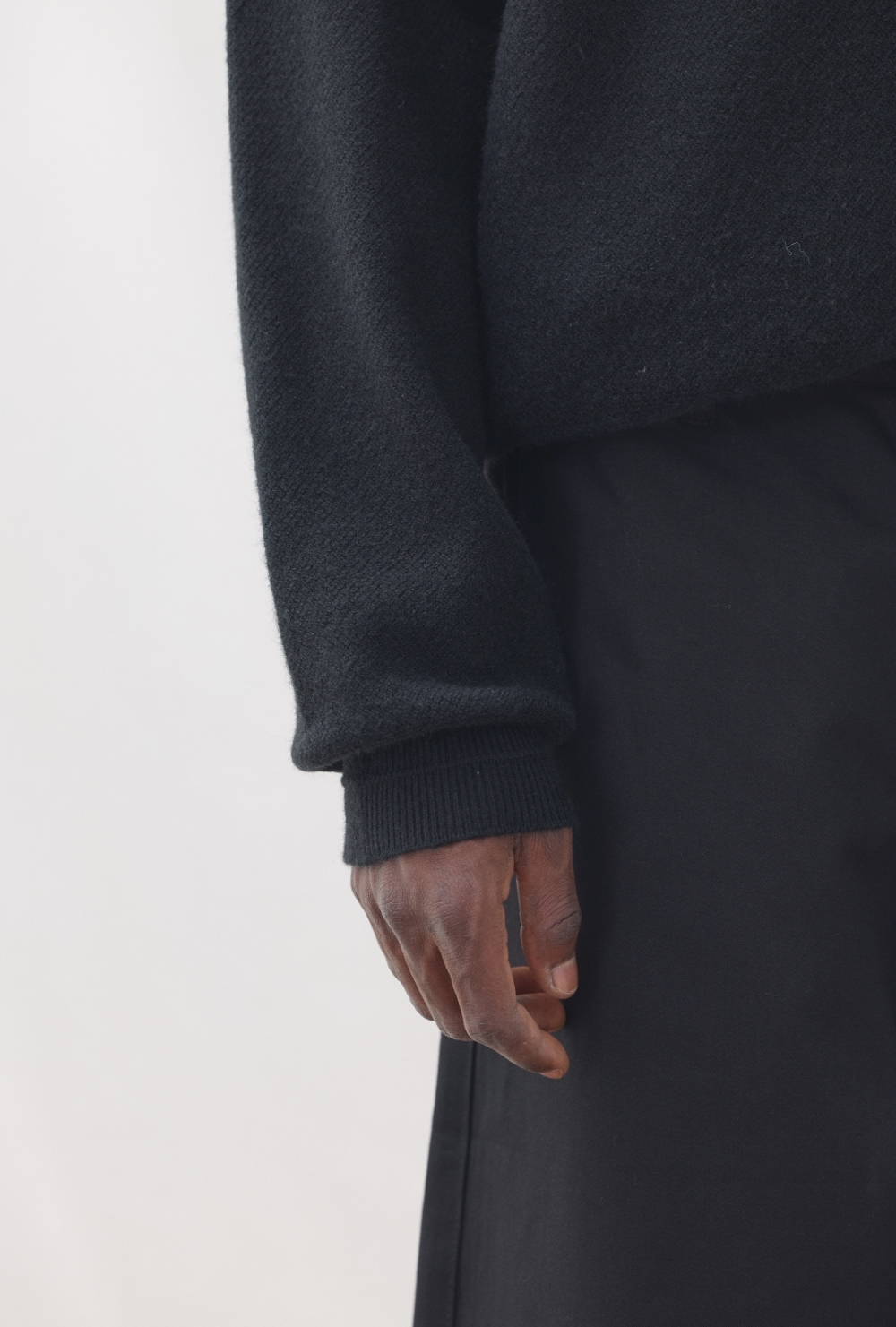 보온성이 좋은 아크릴, 나일론 혼방 원사를 사용하였습니다. 전체 중량을 621g으로 편직하여 간절기에 착용하기에 두께감이 적당하며 겨울에는 이너로 활용 가능합니다. 와플 조직으로 편직하여 착용시 늘어남을 최소화 하였습니다. 소매와 밑단 RIB 부분에는 빨래판을 형상하는 디테일을 추가하여 포인트를 주었습니다. 니트 소재 특성으로 인한 올뜯김, 보풀이 발생할 수 있으니 주의 부탁드립니다. SIZE INFO S : 총장 62, 어깨단면 65, 가슴단면 62.5, 소매길이 56, 밑단단면 45 M : 총장 64, 어깨단면 66.5, 가슴단면 64.5, 소매길이 57, 밑단단면 47 L : 총장 66, 어깨단면 68, 가슴단면 66.5, 소매길이 58, 밑단단면 49 MODEL INFO Model (Men1) : 184cm, 상의 M사이즈 하의 48 착용 Model (Men2) : 183cm, 상의 M사이즈 하의 48 착용