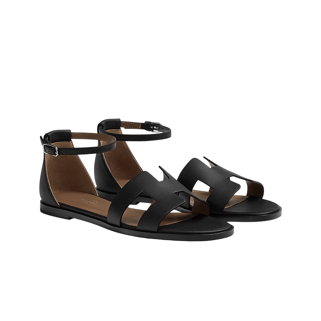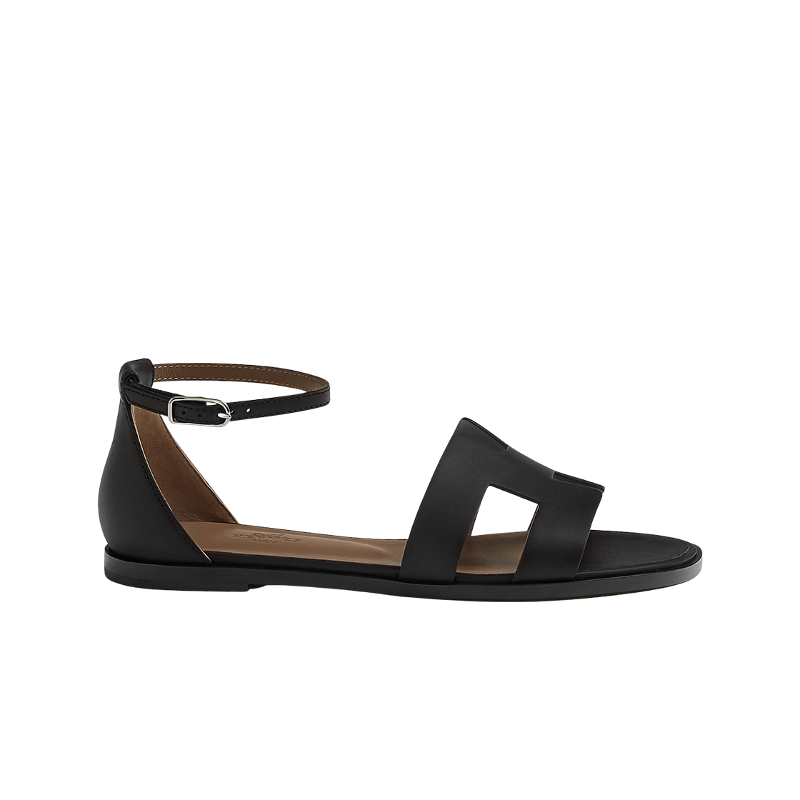 (W) Hermes Santorini Sandal Calfskin & Noir