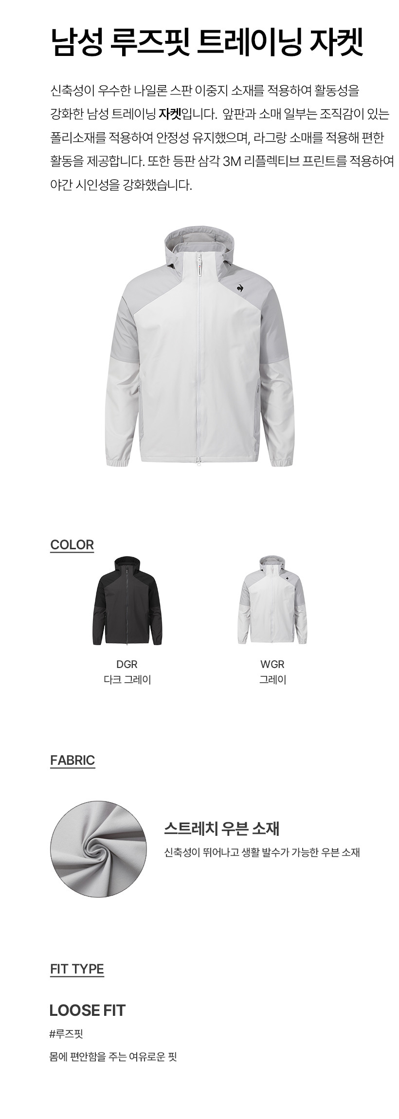 르꼬끄 스포르티브 남성 루즈핏 트레이닝 자켓 - 그레이(QQ321EJK93)