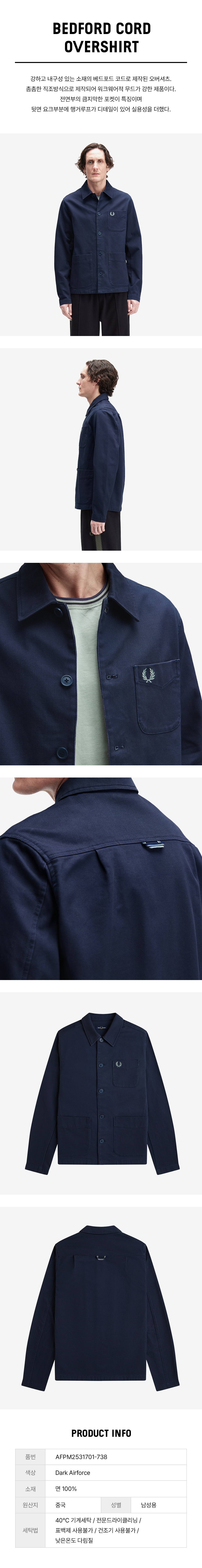 프레드페리 베드포드 코듀로이 오버셔츠 다크에어포스