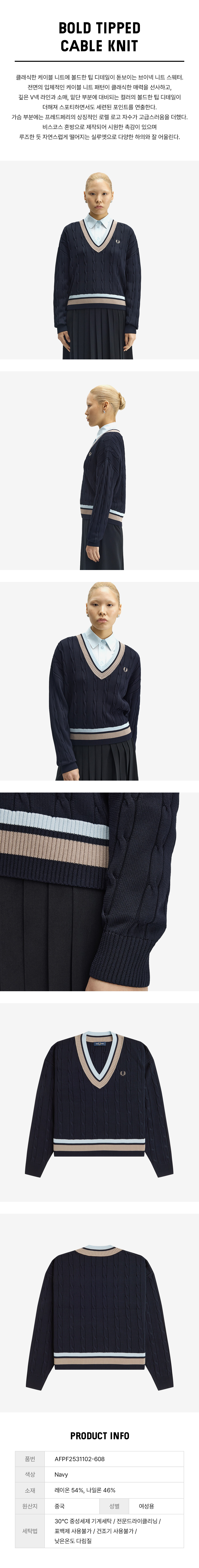 프레드페리 우먼스 볼드 팁 케이블 니트 네이비