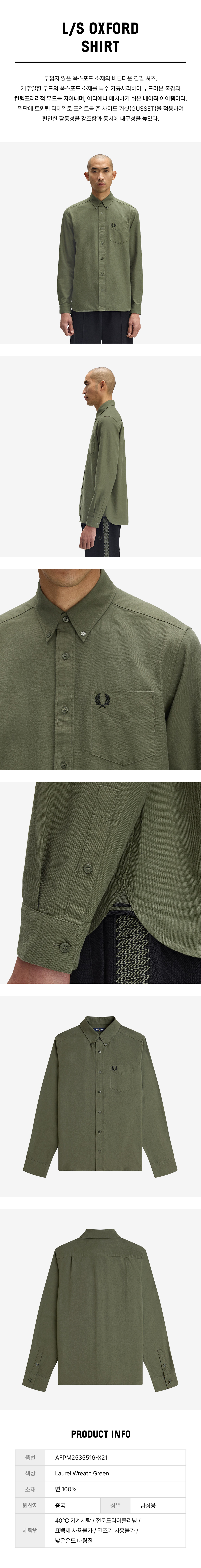 프레드 페리 롱 슬리브 옥스포드 셔츠 로렐리스그린