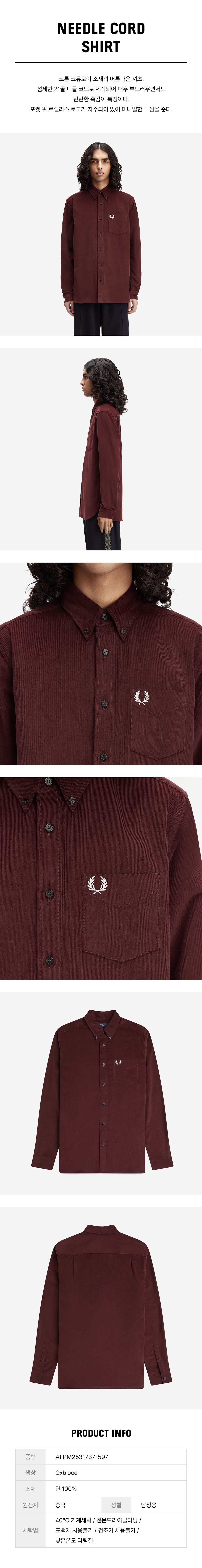 프레드페리 니들 코듀로이 셔츠 옥스블러드
