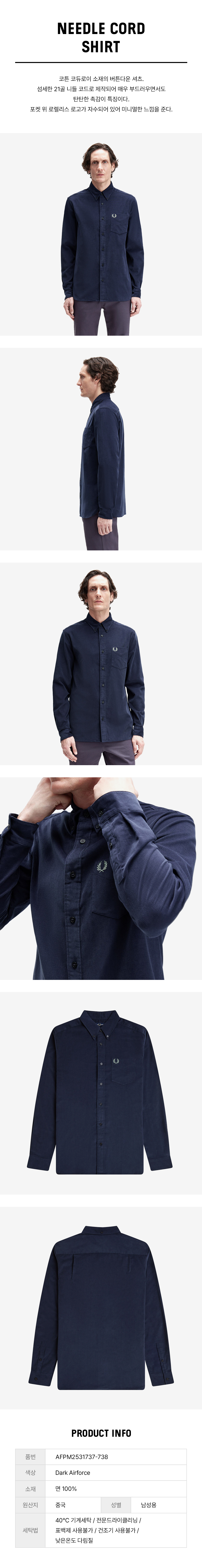프레드페리 니들 코듀로이 셔츠 다크에어포스