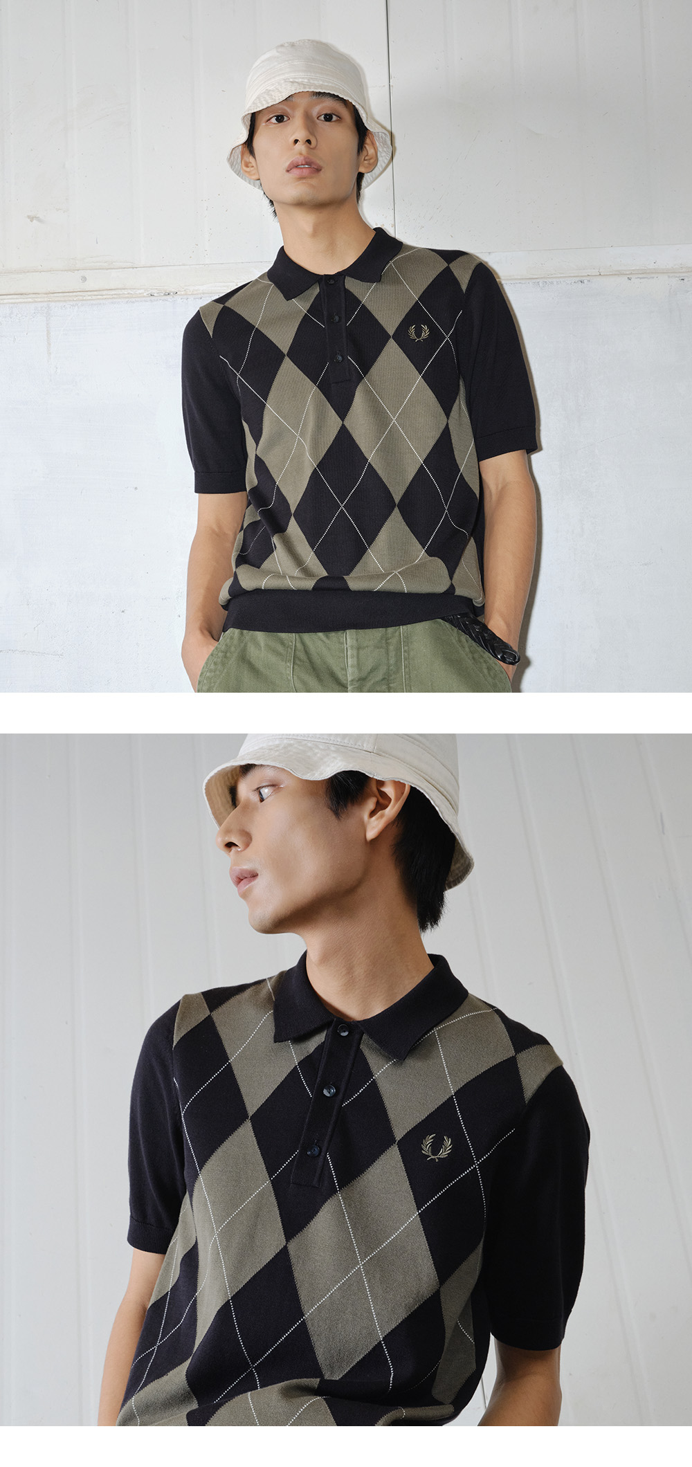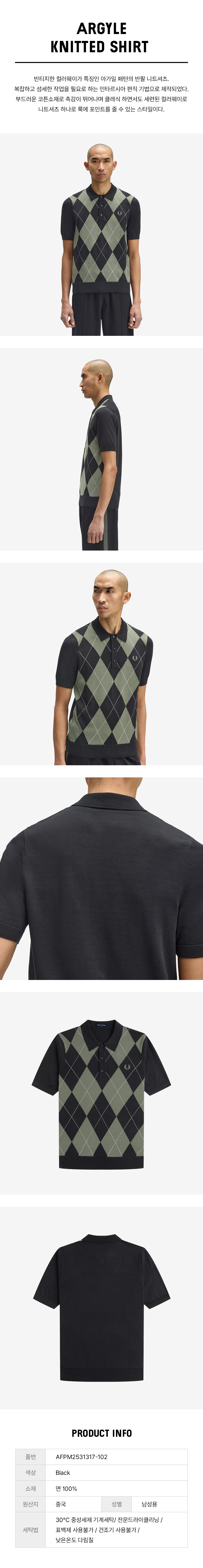 프레드 페리 아가일 니트 셔츠 블랙