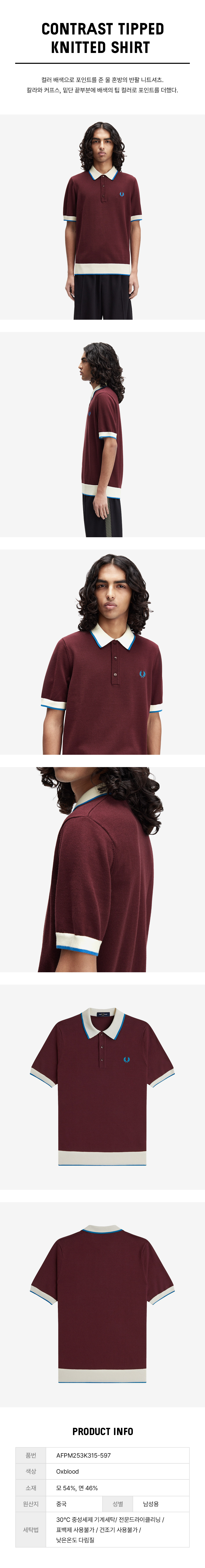 프레드 페리 컨트라스트 팁 니트 셔츠 옥스블러드