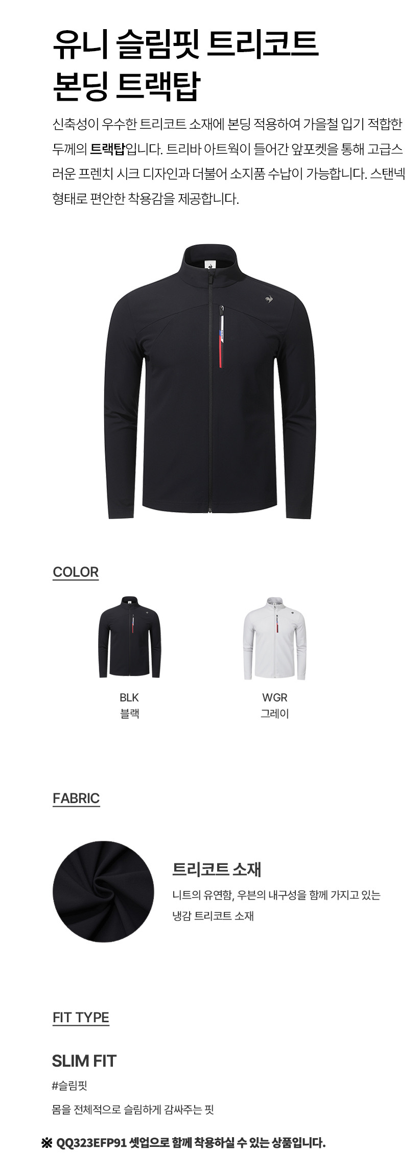 르꼬끄 스포르티브 유니 슬림핏 트리코트 본딩 트랙탑 - 블랙(QQ323EFT91)