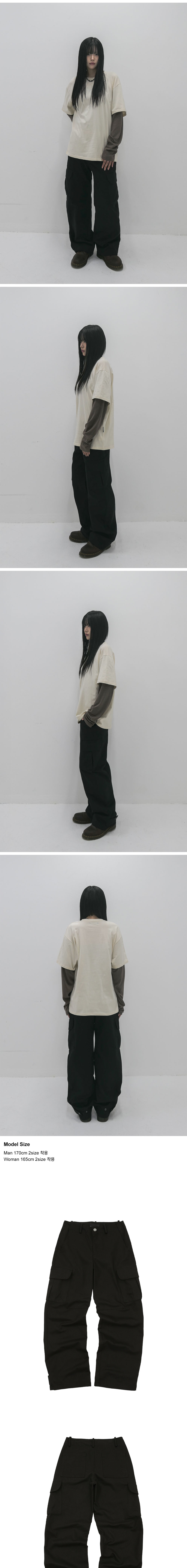 비피투디스오더 스냅 포켓 스티치 팬츠 블랙