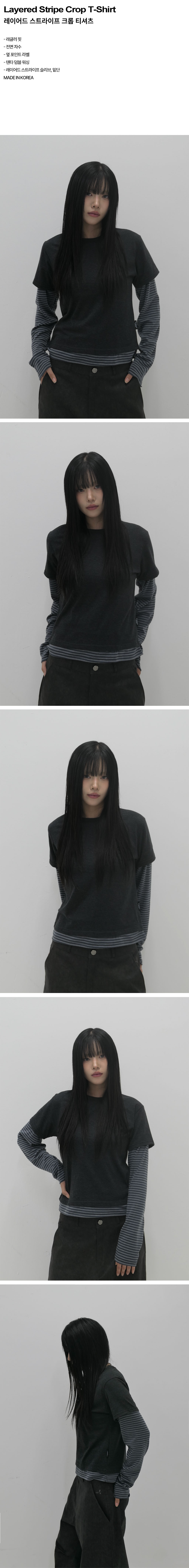 비피투디스오더 레이어드 스트라이프 크롭 티셔츠 차콜