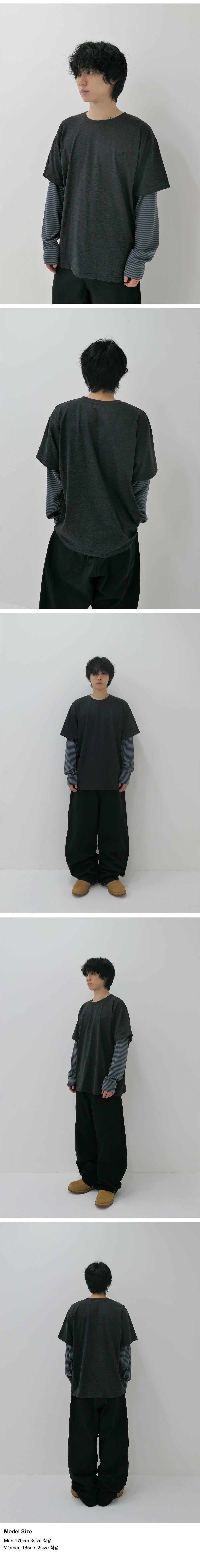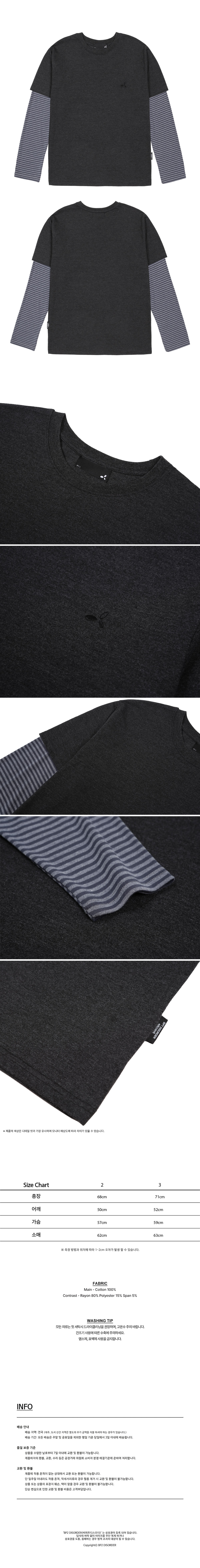 비피투디스오더 레이어드 스트라이프 티셔츠 차콜