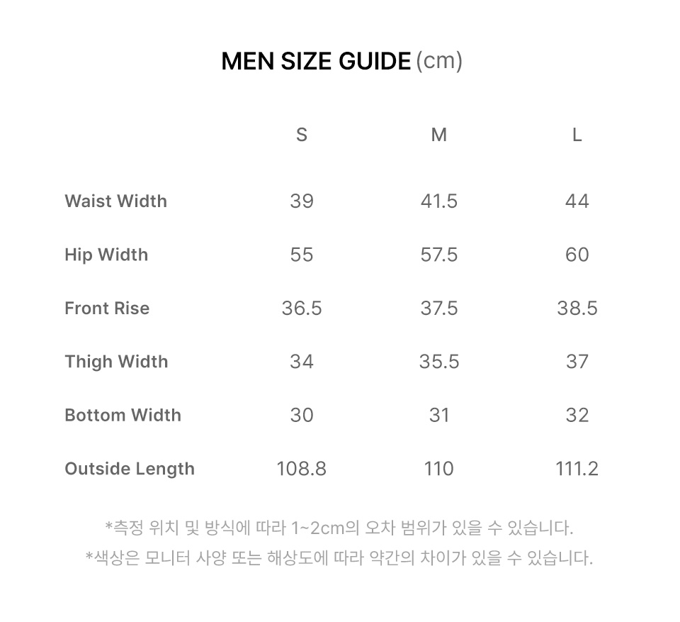 | 허리단면 | 힙단면 | 밑위 | 허벅지단면 | 밑단단면 | 총기장 |