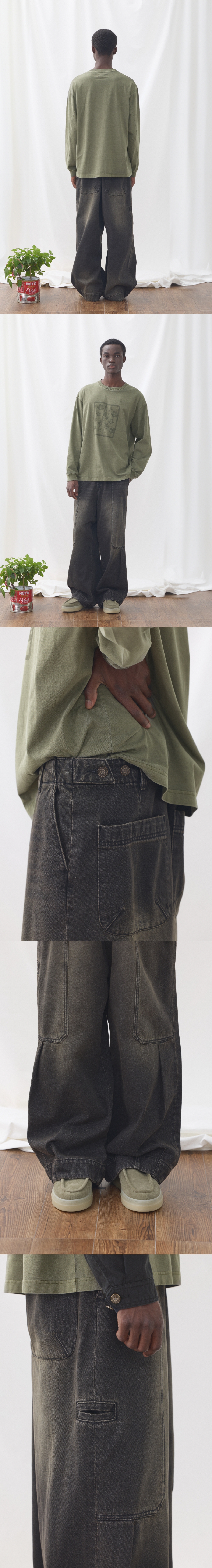 이스트서비스샵 웰트 포켓 와이드 데님 팬츠 블랙 브라운