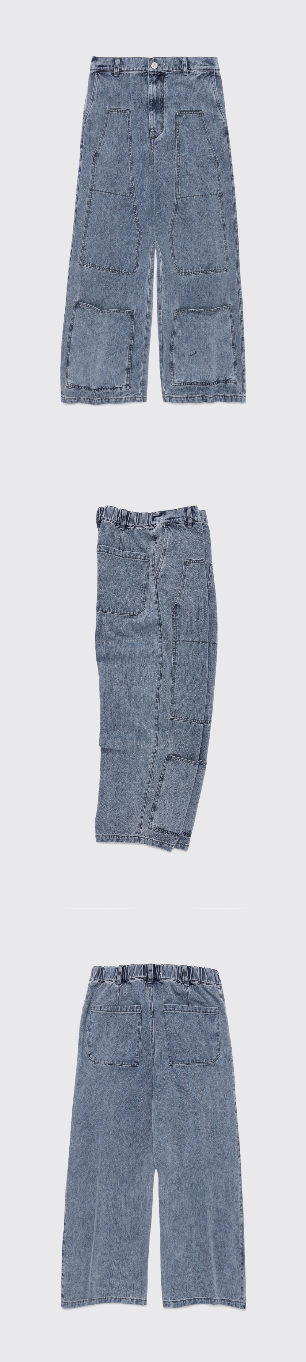 이스트서비스샵 더블 패치드 데님 팬츠 워시드 인디고