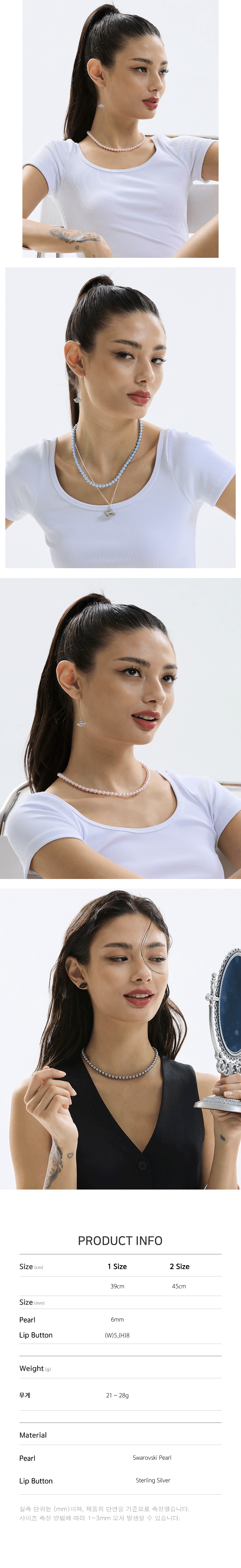 4가지 컬러의 스와로브스키 진주목걸이에 콜아웃뉴이어 시그니처 입술 펜던트를 마감장식에 사용하여, 클래식하면서도 캐쥬얼하게 포인트를 줄 수 있습니다. 각도에 따라 마감장식을 펜던트로 활용하여 다양한 느낌으로 연출 가능합니다.