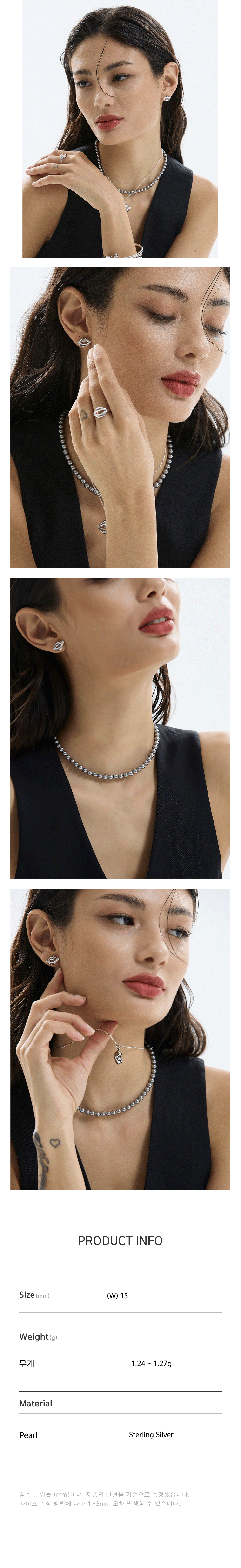 웃는 입모양을 모티브로 만든 심플하면서도 제일 기본적인 Cony Lips Earrings입니다. 활용도가 높아 여러가지 룩에 포인트주기 좋으며 데일리하게 착용가능합니다.