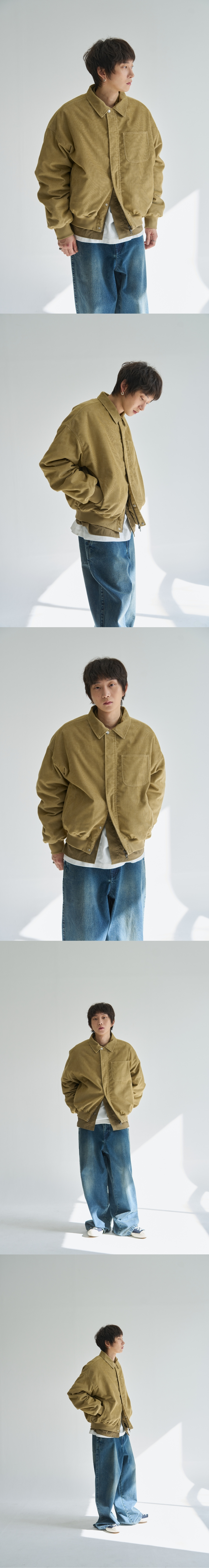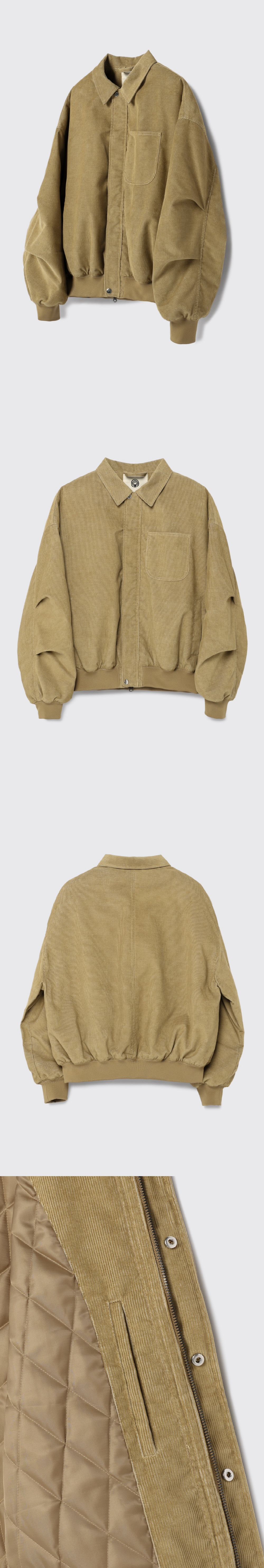 빈티지한 색감의 워싱 된 듯한 코듀로이 원단이 돋보이는 ma-1 봄버 자켓 퀼팅 안감을 사용하여 볼륨감 있는 실루엣을 연출하였습니다. 보온성을 위하여 5온즈 하스 패딩 충전재를 사용하였습니다. 지퍼는 YKK사의 5호 투웨이 금속 지퍼를 사용하였습니다. 제품 내부에 제원단 헹거 루프를 통해 편의성을 제공합니다. Shell : Cotton 65% Polyester 35% SIZE INFO S : 총장 65.5, 어깨단면 66.5, 가슴단면 70, 소매길이 60.5, 밑단단면 41.75 M : 총장 67.5, 어깨단면 68.5, 가슴단면 72.5, 소매길이 62, 밑단단면 44.25 L : 총장 69.5, 어깨단면 70.5, 가슴단면 75, 소매길이 63.5, 밑단단면 46.75 MODEL INFO Model (Men1) : 179cm, 60KG 상의 M사이즈 하의 48 착용