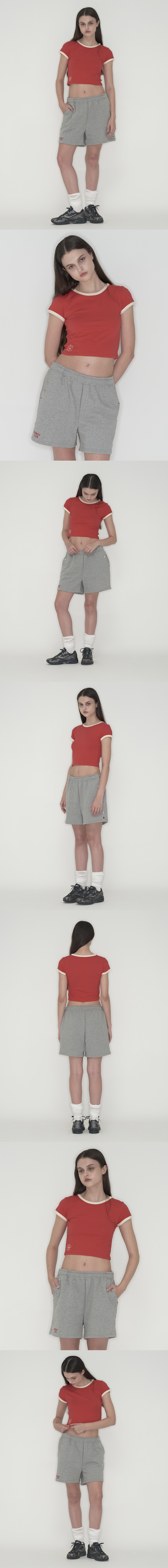 떨스티클럽 베이직 링거 티셔츠 - 레드